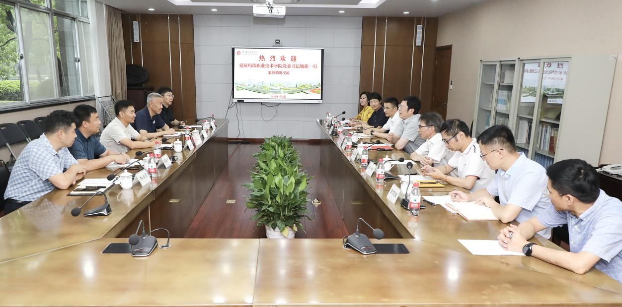 7月5日上午,克拉玛依职业技术学院党委书记魏新一行来我校调研交流。学校党委书记金杨华会见了魏新一行。