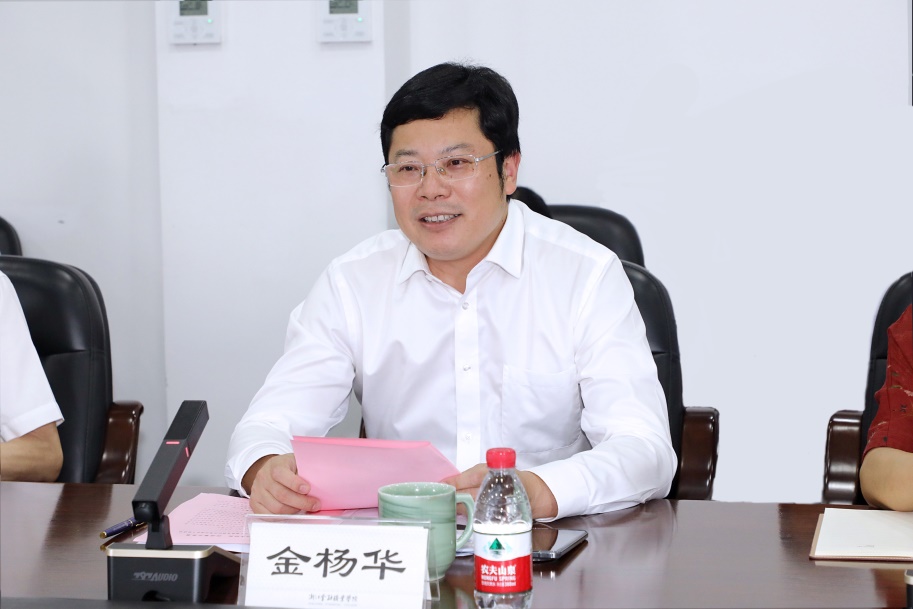 金杨华代表学校向省委教育工委、省教育厅一直以来给予学校事业发展的关心、支持和帮助表示衷心感谢。他表示,召开此次调研成果交流会,是学习贯彻习近平新时代中国特色社会主义思想主题教育的重要内容,是运用党的创新理论研究新情况、解决新问题的一次集中研讨,是对调研工作成果的一次集中检阅,是学校高质量发展难题的一次集中破解,是学校领导班子成员对工作思考的一次集中交流,也是对主题教育工作成效的集中检验。金杨华表示,学校要进一步做好主题教育“后半篇”文章,进一步深化调查研究成果应用,推进主题教育取得更大实效。一是切实提高政治站位,把实现好、维护好、发展好最广大师生的根本利益作为一切工作的出发点和落脚点,把调研中形成的好思路好想法转化为推动学校发展的能力。二是建立督查回访制度,把调研成果转化运用清单利用好,及时跟踪整改成效。三是做好问题检视整改,踔厉奋发建新功。切实把调研成果转化为解决问题、改进工作的实际举措,将在主题教育取得的成果转化为强力推进学校四个“一号工程”、打造创建高水平职业大学标志性成果的强大动力,为进一步巩固和拓展主题教育成果,以具体行动和实际成效为教育强国建设和我省“两个先行”贡献浙金院力量。