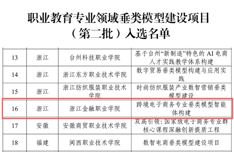 近日,教育部职业教育发展中心公布了职业教育专业领域垂类模型建设项目(第二批)入选名单。我校跨境电子商务专业成功入选。