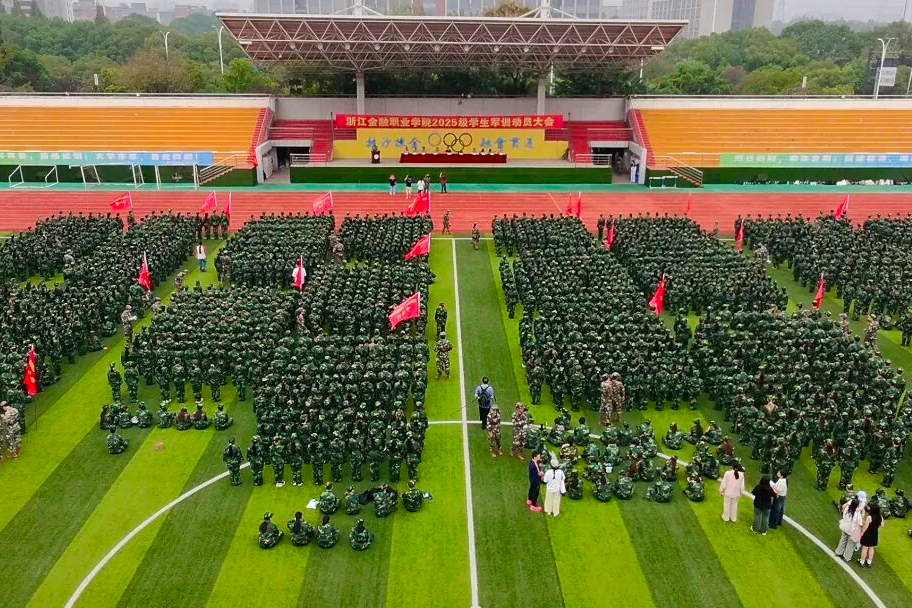10月13日上午,浙江金融职业学院2025级学生军训动员大会在杭州、绍兴双校区同步举行。军训工作领导小组全体成员,2025级全体教官、参训学生及班主任、辅导员参会,标志着新一届学子的军训征程正式开启。大会以庄严的升国旗、奏国歌仪式拉开序幕。全体参会人员肃立注目,伴随嘹亮国歌,五星红旗冉冉升起,尽显金院学子的昂扬风貌与庄重态度。
