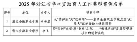 近日,浙江省教育厅办公室发布《关于公布2025年浙江省学生资助育人工作典型案例的通知》,我校2篇案例成功入选,彰显我校在该领域的创新实践与扎实成效。