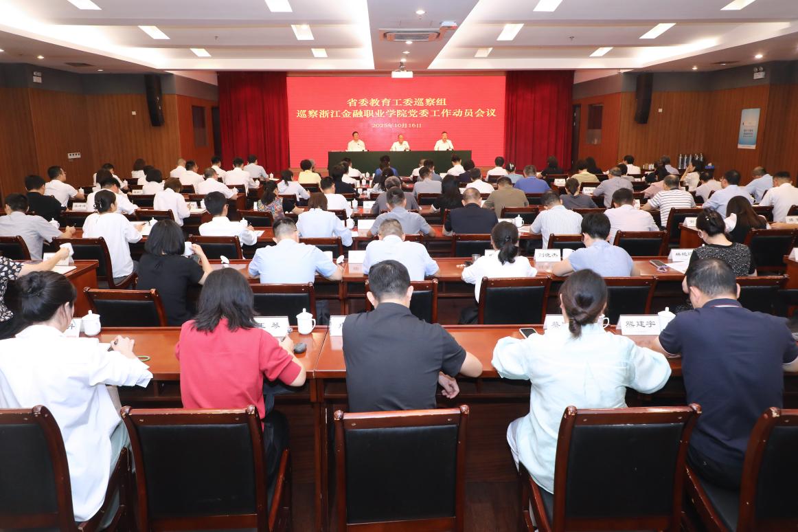 根据省委教育工委统一部署,2025年10月16日下午,省委教育工委巡察组巡察浙江金融职业学院党委工作动员会召开。省委教育工委专职副书记、省教育厅党组副书记许翰信出席会议并讲话,省委教育工委巡察组组长徐旭东作巡察工作安排讲话。浙江金融职业学院党委书记金杨华主持会议并作表态发言。