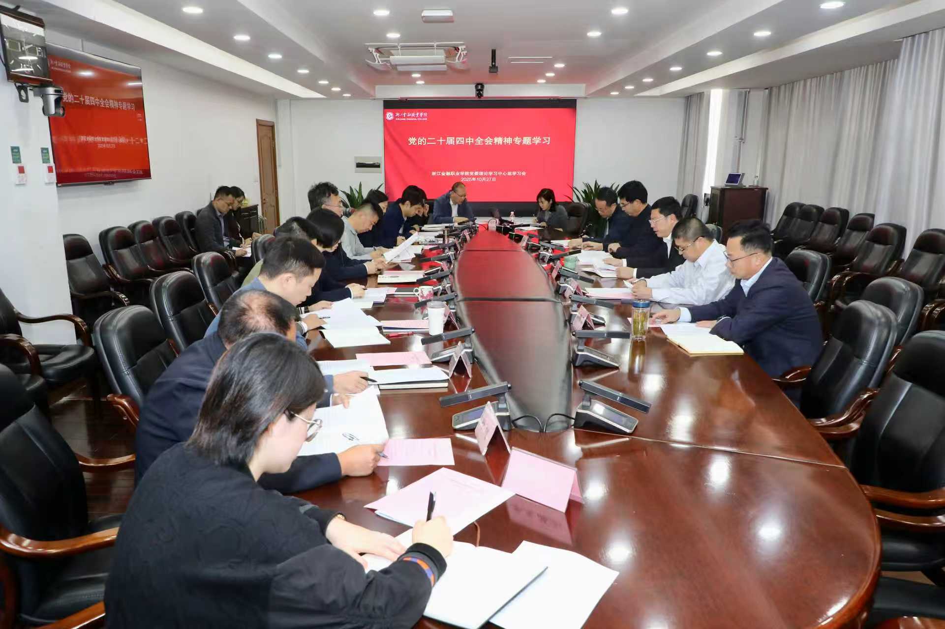 陈荣达传达了浙江省委常委会扩大会议传达学习党的二十届四中全会精神的相关内容。党委副书记陈云涛,党委委员、副校长陈颖淑,党委委员、党委组织部(人才办)部长刘仿强分别结合分管工作深入交流学习体会及贯彻落实思路。学校党政领导班子成员、各党务部门、发展规划处、数字化建设管理中心相关负责人参加会议。相关党务部门负责人交流了学习体会。