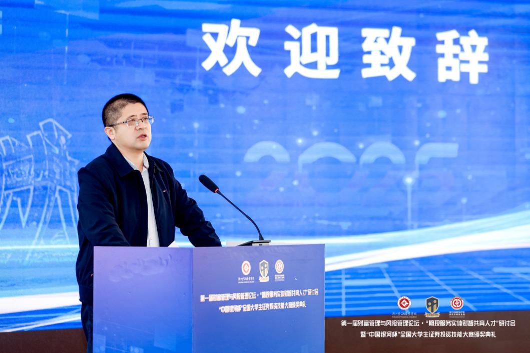 陈荣达在致辞中代表学校向各参会来宾表示热烈欢迎,向各有关单位对表示诚挚谢意和崇高敬意,并指出学校积极响应国家“金融服务实体经济”战略部署,围绕“五篇大文章”持续发力,主动对接浙江民营经济发展需求,不断深化产教融合、加快培育实战型金融人才。这是学校服务实体经济的关键路径,也是推动金融领域产教深度融合的重要举措。他强调,长期以来学校始终以“培养金融行业高素质技术技能人才”为核心,坚持走产教融合、校企合作之路,在财富管理与风险管理领域积累了扎实的实践经验。他表示,学校将以本届论坛为起点,进一步深化与各个行业机构的合作,广泛汇聚行业智慧,共同构建面向未来、融合“财经+科技+文化”的现代化人才培养新体系,为社会经济高质量发展提供支撑。