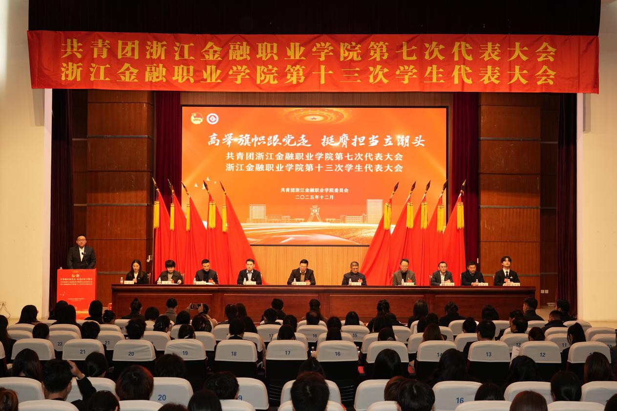 12月24日,共青团浙江金融职业学院第七次代表大会、第十三次学生代表大会在明理报告厅召开。学校党委书记金杨华,学校校长陈荣达,学校党委副书记陈云涛,党委委员、党委组织部(人才办)部长刘仿强,团省委学校部副部长马双龙,钱塘团区委、省内兄弟高校团委相关负责同志,学校职能部门负责人,各二级学院党总支副书记以及全体代表300余人出席大会。