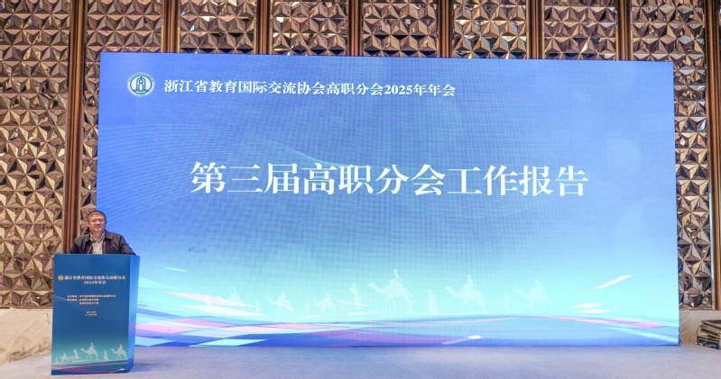 12月25日至26日,浙江省教育国际交流协会高职分会2025年度会议在台州举行。全省50所高职院校的150余名领导和代表齐聚一堂,共谋职业教育国际化高质量发展新篇章。学校校长、浙江省教育国际交流协会高职分会副会长陈荣达应邀出席会议,并受分会委托作第三届分会工作报告,全面总结分会过去五年的工作成效,擘画未来发展方向。