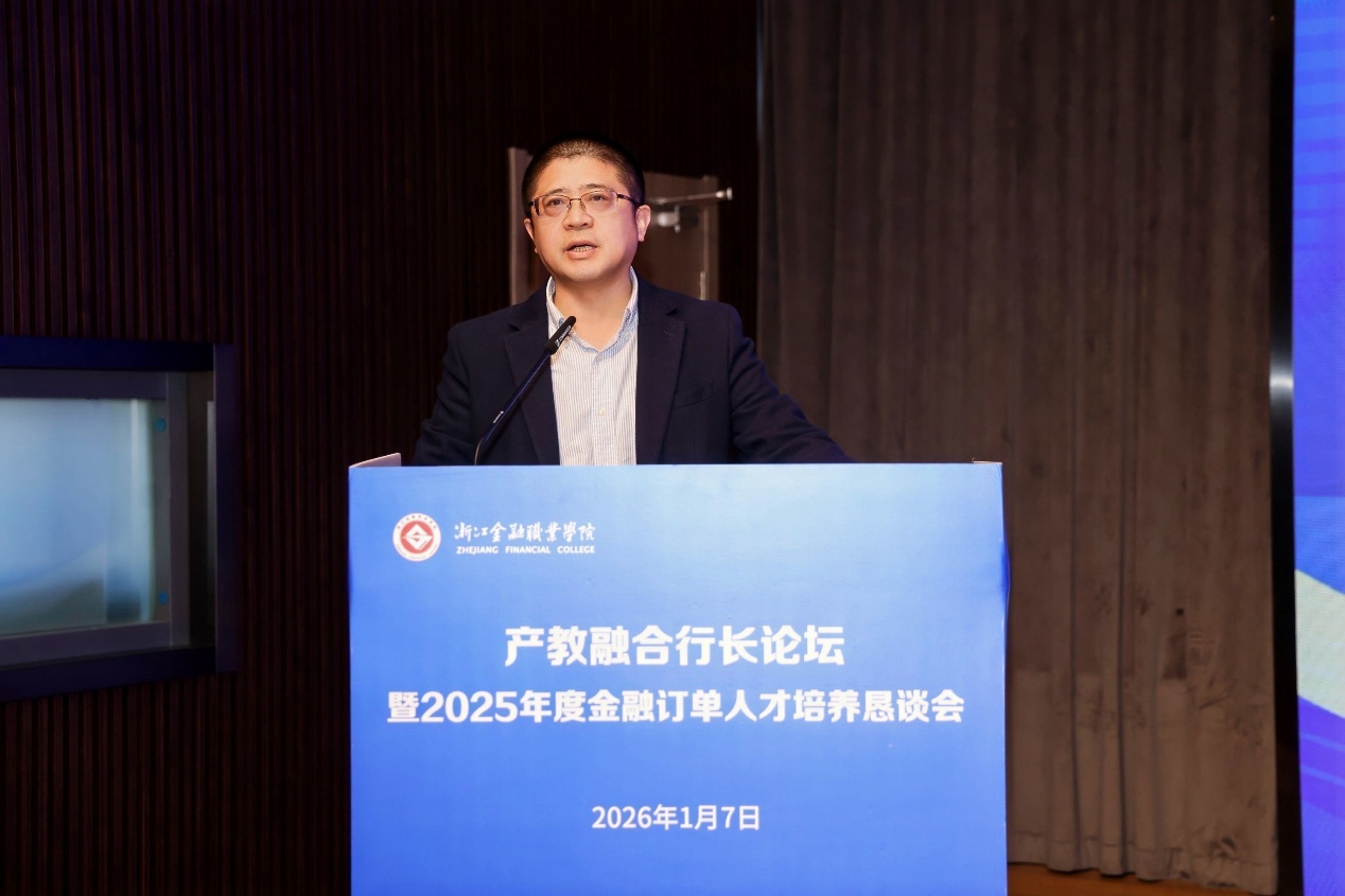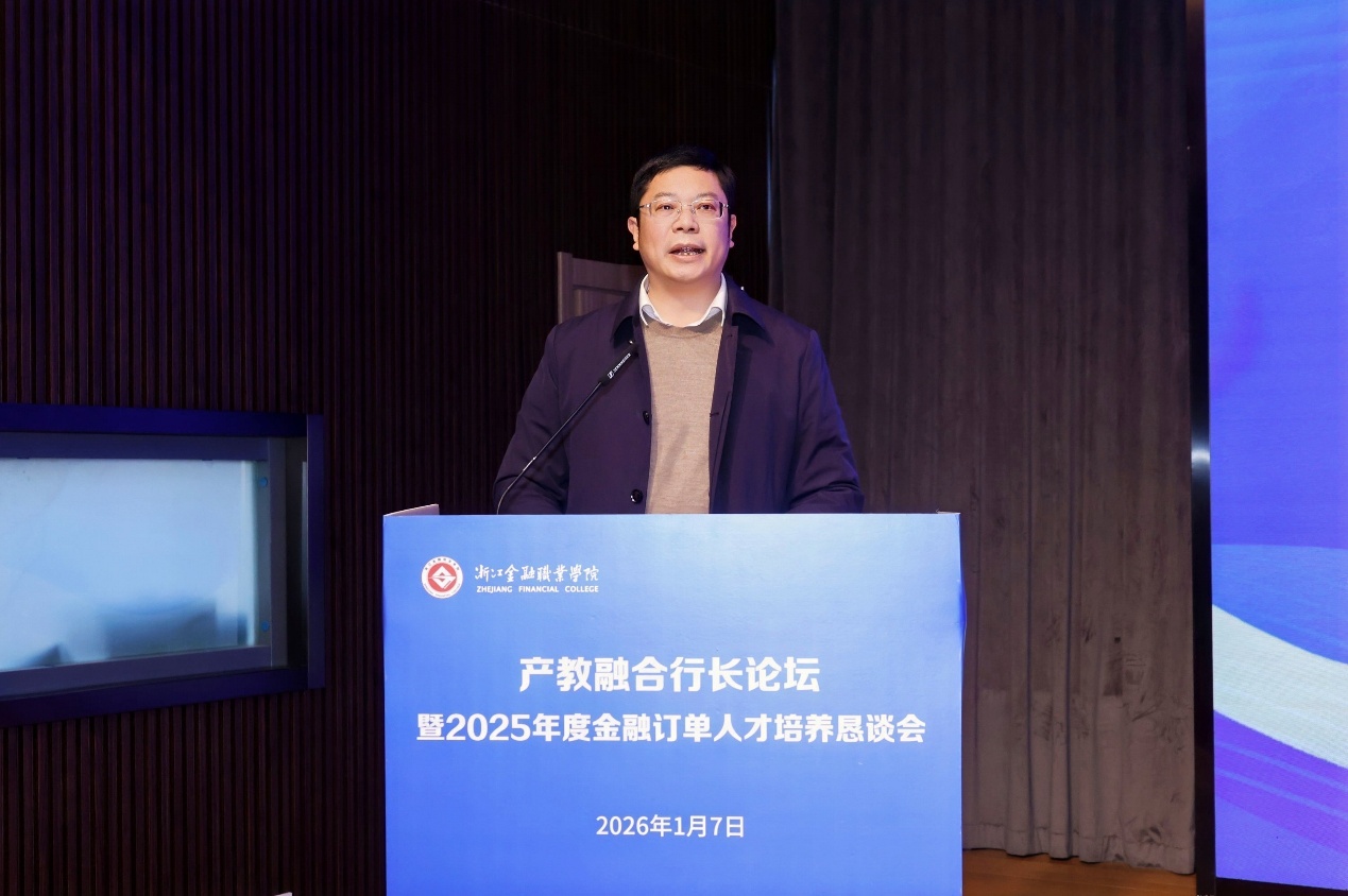 1月7日,浙江金融职业学院产教融合行长论坛暨2025年度金融订单人才培养恳谈会在杭州举行。学校党委书记金杨华、校长陈荣达出席会议。来自省内外20余家校企合作单位代表、全国普惠金融行业产教融合共同体成员单位代表应邀赴会。学校党委委员、副校长郭福春,学校党委委员、副校长陈颖淑,学校党委委员、党委宣传部部长、党委统战部部长孔德兰,学校相关职能部门负责人、各二级学院负责人及师生代表参加会议。