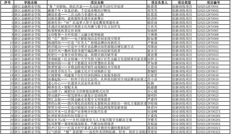 近日,浙江省教育厅办公室公布2025年省级大学生创新训练计划项目立项名单,我校32个项目成功入选,彰显了学校在创新人才培养与实践教学改革中的显著成效。