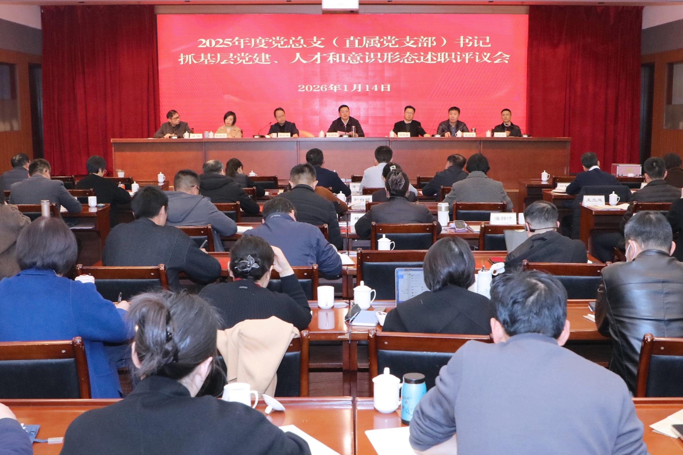 1月14日下午,学校召开2025年度党总支(直支)书记抓基层党建、人才和意识形态述职评议会暨党的建设领导小组月度例会。学校党委书记金杨华出席会议并讲话,党委副书记陈云涛主持会议。