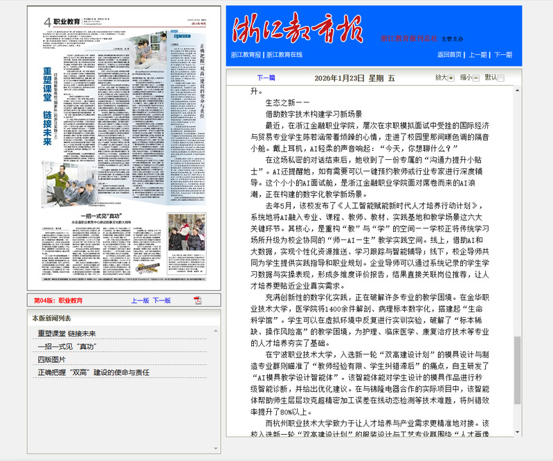 【浙江教育报】重塑课堂 链接未来 打造技能型高校“国家队”的浙江实践(上)