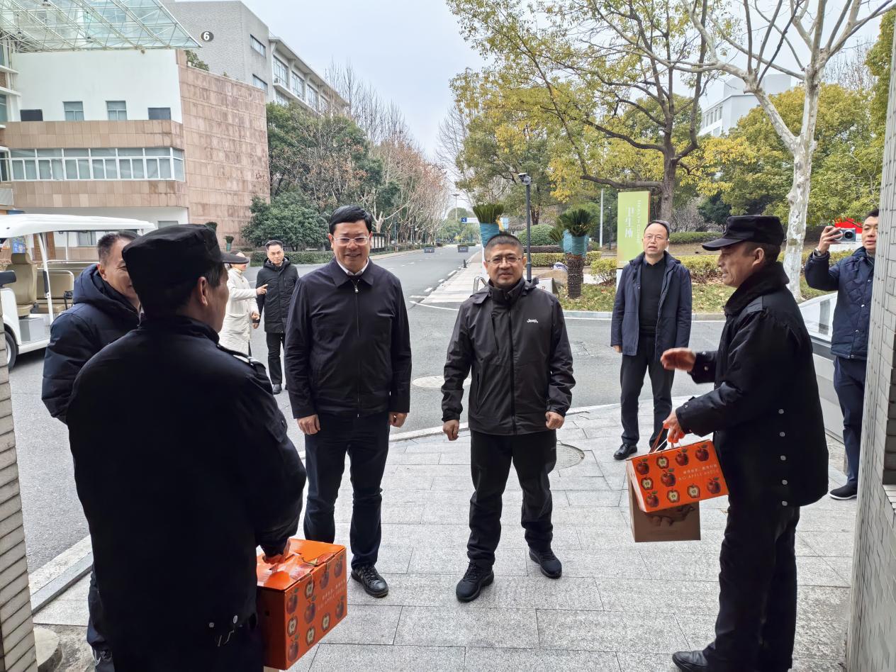 寒假伊始,年味渐浓,为切实筑牢校园安全防线,扎实做好寒假期间校园安全保障工作,同时向坚守在一线的值守职工致以诚挚关怀,2月9日,学校党委书记金杨华、校长陈荣达带队开展校园安全检查并看望春节期间坚守岗位的一线职工,学校党委副书记陈云涛陪同。