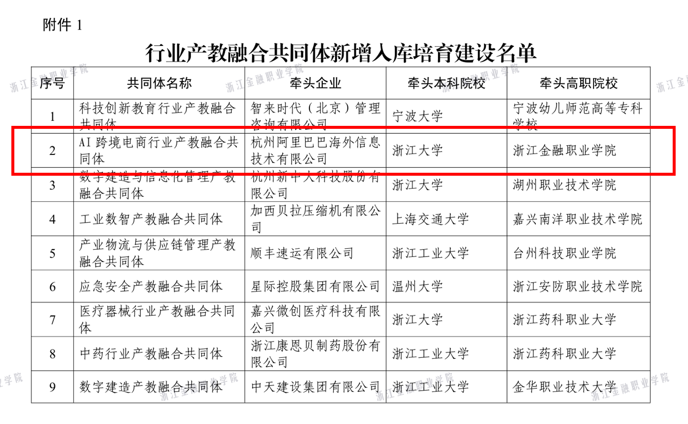 近日,浙江省教育厅公布了2025年度产教紧密融合新型平台名单。我校作为牵头高职院校,申报的“AI跨境电商行业产教融合共同体”成功入选行业产教融合共同体培育项目。