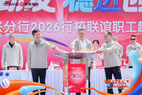 4月19日,浙商银行绍兴分行2026年行校联谊职工趣味运动会在我校绍兴校区顺利举行。学校党委委员、纪委书记张荣斐出席开幕式并致辞,浙商银行绍兴分行行长王震乾,副行长、我校93届校友、绍兴校友会会长钱俊及双方相关负责人、参赛运动员、工作人员参加活动。