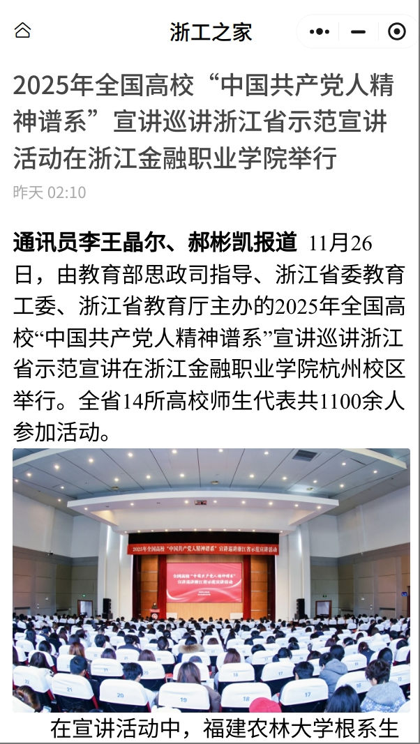 【浙工之家】2025年全国高校“中国共产党人精神谱系”宣讲巡讲浙江省示范宣讲活动在浙江金融职业学院举行